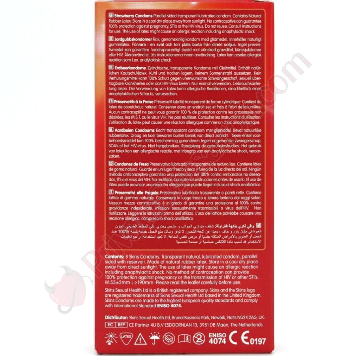 Presentiamo il nostro innovativo pack da 8 preservativi Skins con gusto fragola, un'opzione che unisce design raffinato e prontezza all'uso. Con fino al 33% in più di preservativi rispetto ai leader di mercato, offri un vantaggio competitivo immediato ai tuoi clienti. Aggiungi un tocco di freschezza fruttata alla tua gamma di prodotti con i preservativi Skins gusto fragola, ideali per chi cerca un'esperienza sensoriale piacevole senza compromessi sulla protezione.