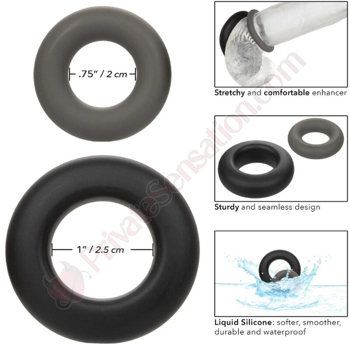 Il set include due anelli di dimensioni diverse (2 cm e 2,5 cm di diametro), offrendoti un controllo senza precedenti sulle tue sensazioni.