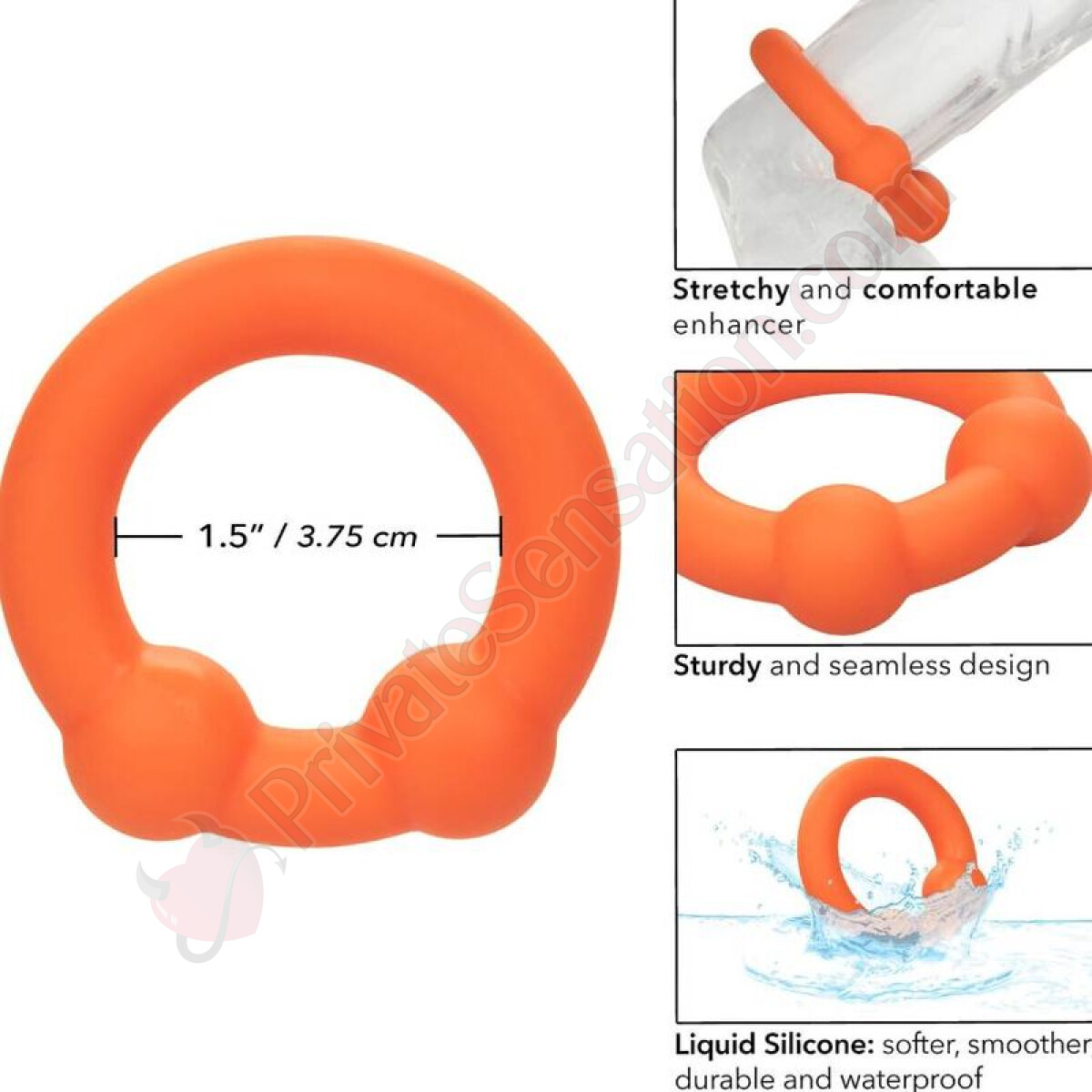 Il divertente anello è realizzato in silicone liquido ultraelastico con un dettaglio unico di perline per una maggiore provocazione. Questa combinazione di materiali premium e design intelligente garantisce: