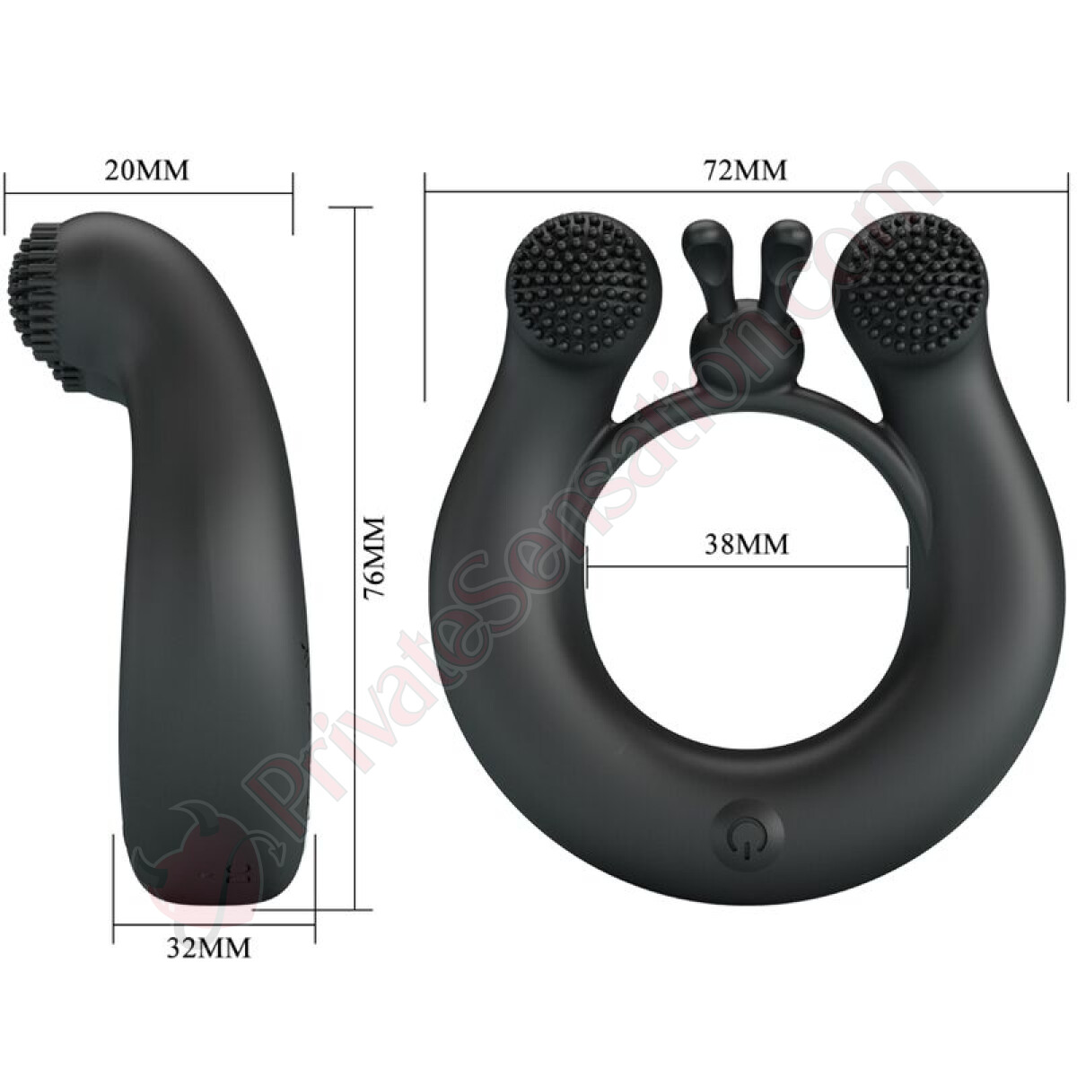 All'interno dell'anello, due potenti motori silenziosi azionano 12 modalità di vibrazione diverse, studiate per stimolare in modo mirato. Le punte dello stimolatore si muovono con un delicato fremito, sfiorando i punti più sensibili del partner ricevente, amplificando il piacere reciproco. Che tu preferisca vibrazioni costanti, pulsanti o a onda, troverai la modalità perfetta per ogni situazione.