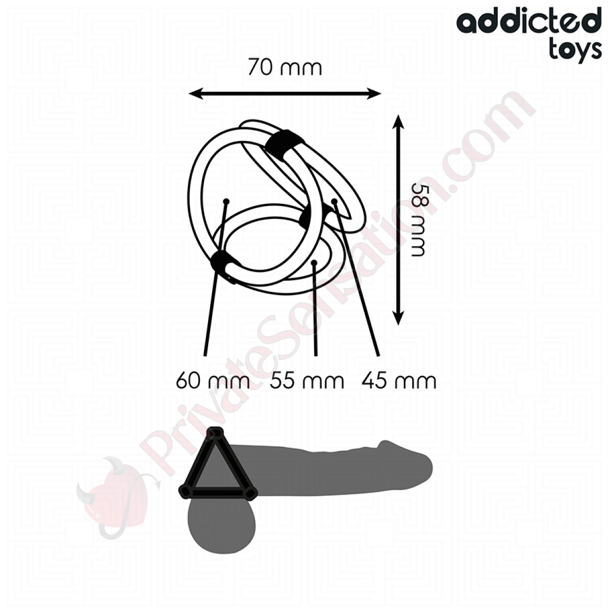 Grazie alla sua struttura unica composta da tre anelli di diametro differente, l'anello triplo Addicted Toys si adatta a varie zone del corpo, permettendo un uso personalizzato in base alle tue preferenze. Che tu voglia concentrare la pressione su una specifica area o distribuirla in modo uniforme, questo design intelligente offre infinite possibilità di utilizzo.