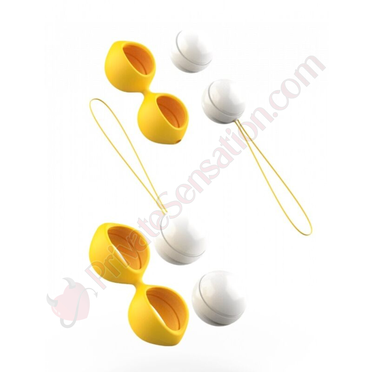 Il sistema esclusivo include quattro pesi galleggianti intercambiabili che creano movimenti fluidi e stimolanti all'interno del canale vaginale. Questa tecnologia unica non solo intensifica le sensazioni durante l'uso, ma trasforma ogni sessione in un vero e proprio allenamento progressivo per il pavimento pelvico.