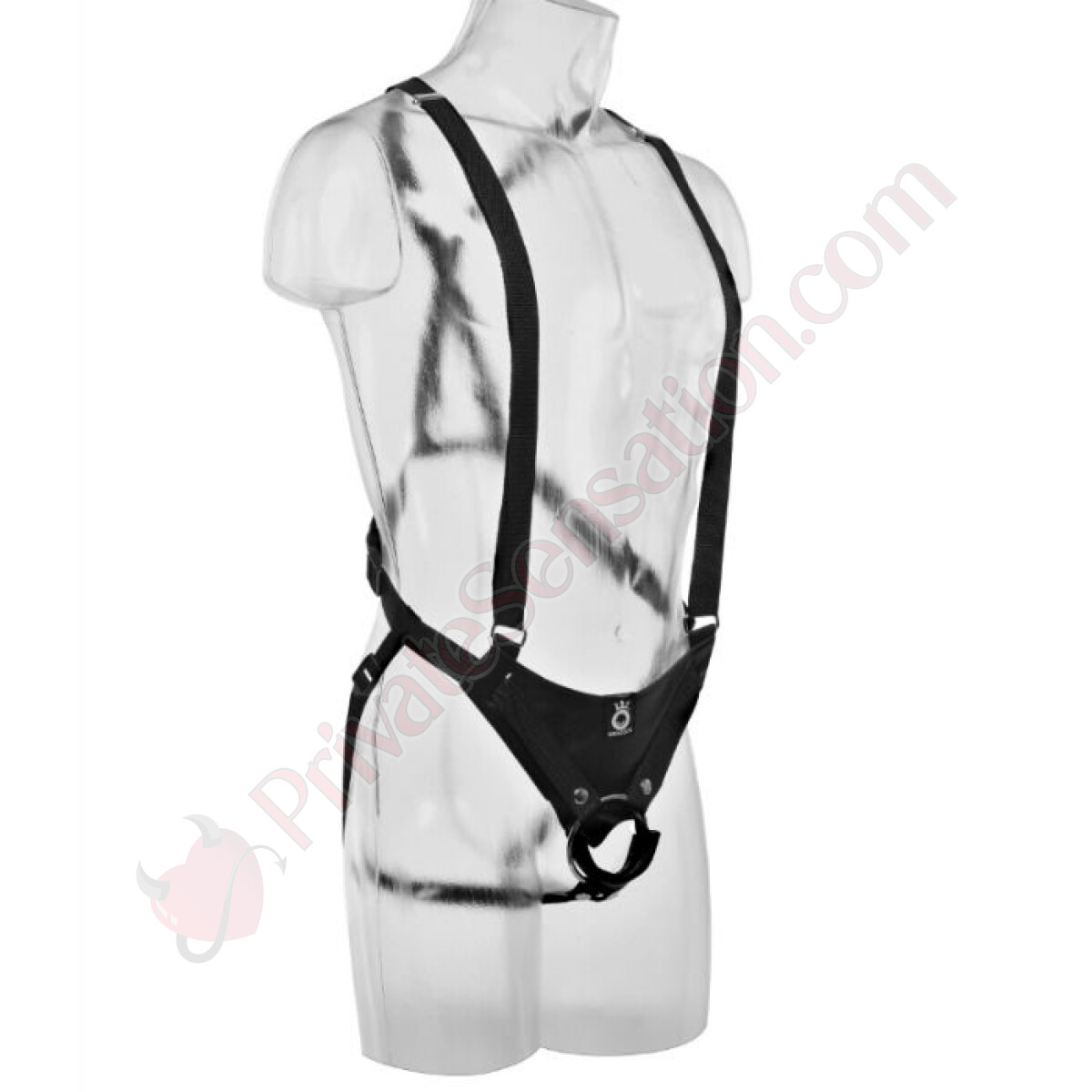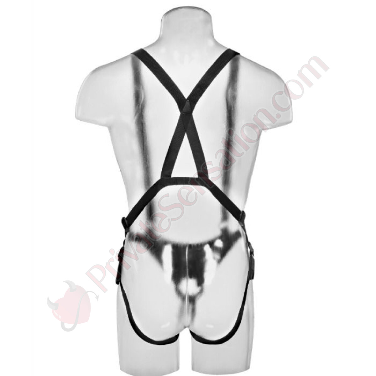 Il sistema include due bretelle in nylon resistente che si adattano facilmente alle spalle, garantendo un supporto ottimale per il peso del dildo. Grazie a un anello di metallo robusto, il dildo rimane saldamente in posizione anche durante le azioni più intense. Una fascia in velcro avvolge e fissa ulteriormente il dispositivo, assicurando stabilità e comfort durante l'uso.