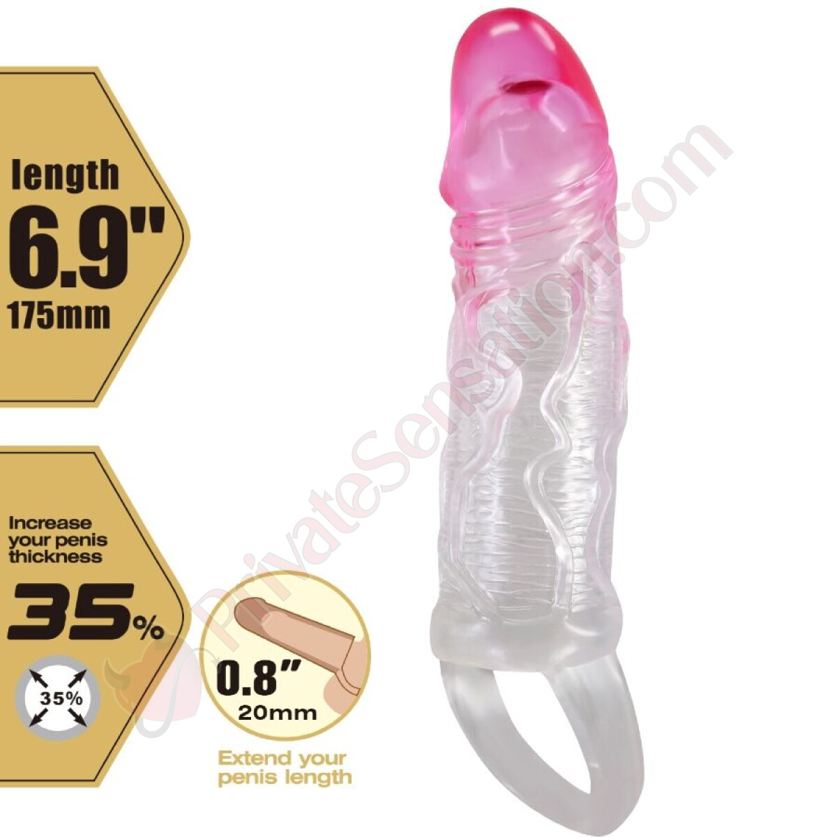 Non si tratta solo di un semplice accessorio, ma di un vero e proprio moltiplicatore di piacere. La texture aggiuntiva della guaina fornisce sensazioni tattili intense, mentre la sua capacità di prolungare l'erezione ti permette di godere di momenti più lunghi e appaganti.