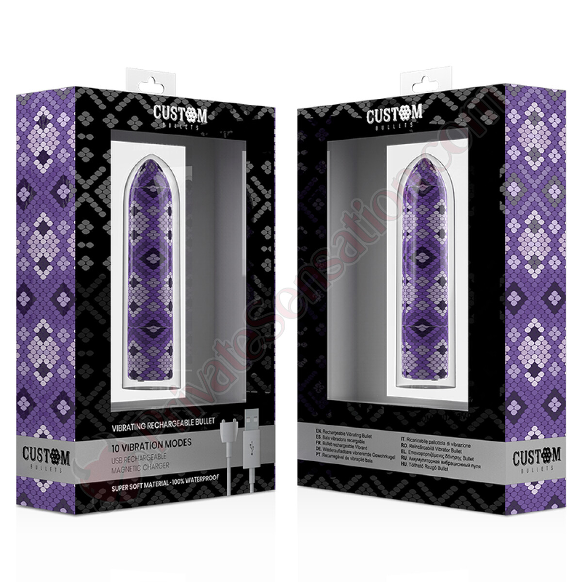 Il design compatto e raffinato di Custom Bullets™ si distingue in ogni ambiente. Con le sue dimensioni ridotte di soli 6,25 cm di lunghezza e 2 cm di diametro, questo mini massaggiatore è discreto e facile da trasportare, rendendolo il partner ideale per i tuoi viaggi e avventure. La finitura in silicone morbido e ABS offre una sensazione piacevole al tatto, mentre lo stampato elegante aggiunge un tocco di stile che conquisterà anche gli amanti più esigenti.