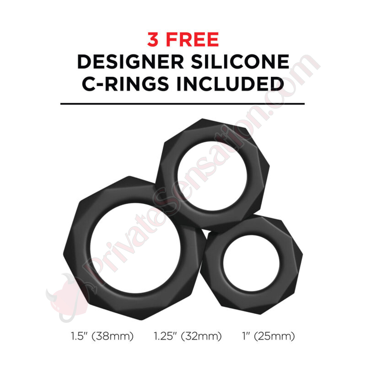 Il meccanismo di spinta interno è completamente nascosto all’interno, garantendo un’estetica raffinata e un funzionamento silenzioso. Attorno alla manica, due anelli di “presa” in metallo avvolgono e stringono delicatamente il pene, mentre una fila di perline del piacere si muove su e giù lungo l’asta, creando una stimolazione continua e intensa.