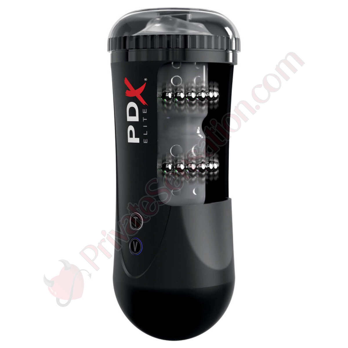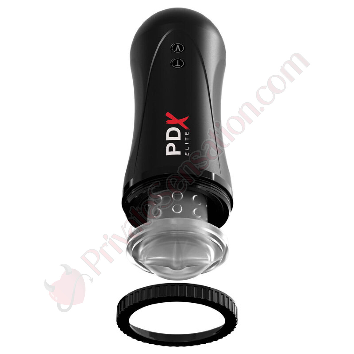 Il meccanismo di spinta interno è completamente nascosto all'interno, garantendo un'estetica elegante e una funzionalità impeccabile. Attorno alla manica, due anelli di "presa" in metallo si muovono ritmicamente, stringendo e stimolando l'asta con una precisione millimetrica.