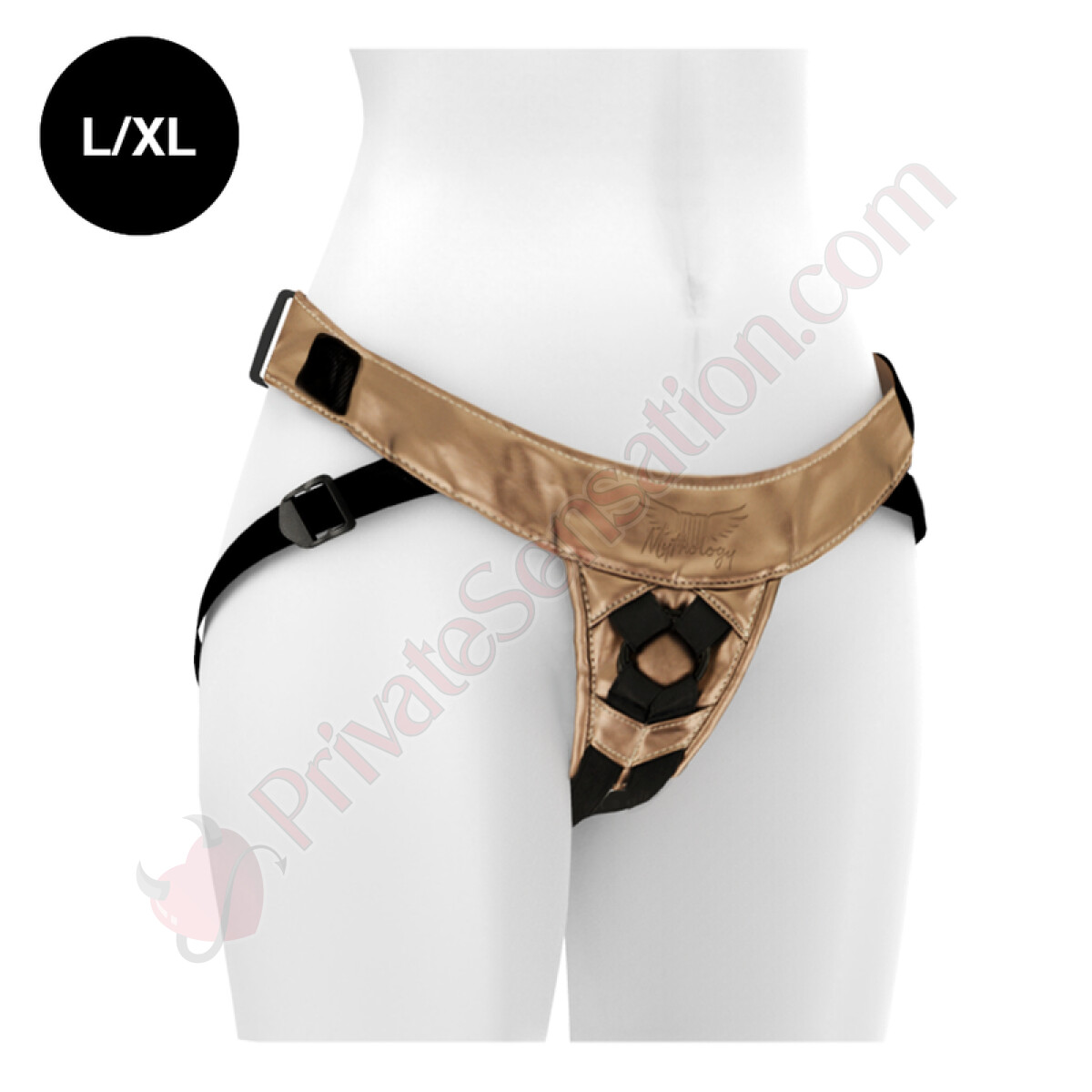 Questa imbracatura per dildo è un accessorio realizzato a mano in Europa con materiali vegani. Progettata per essere comoda e resistente, presenta una colorazione bronzo. La sua struttura è completamente regolabile per adattarsi a diverse corporature e consentire l'utilizzo in più posizioni.