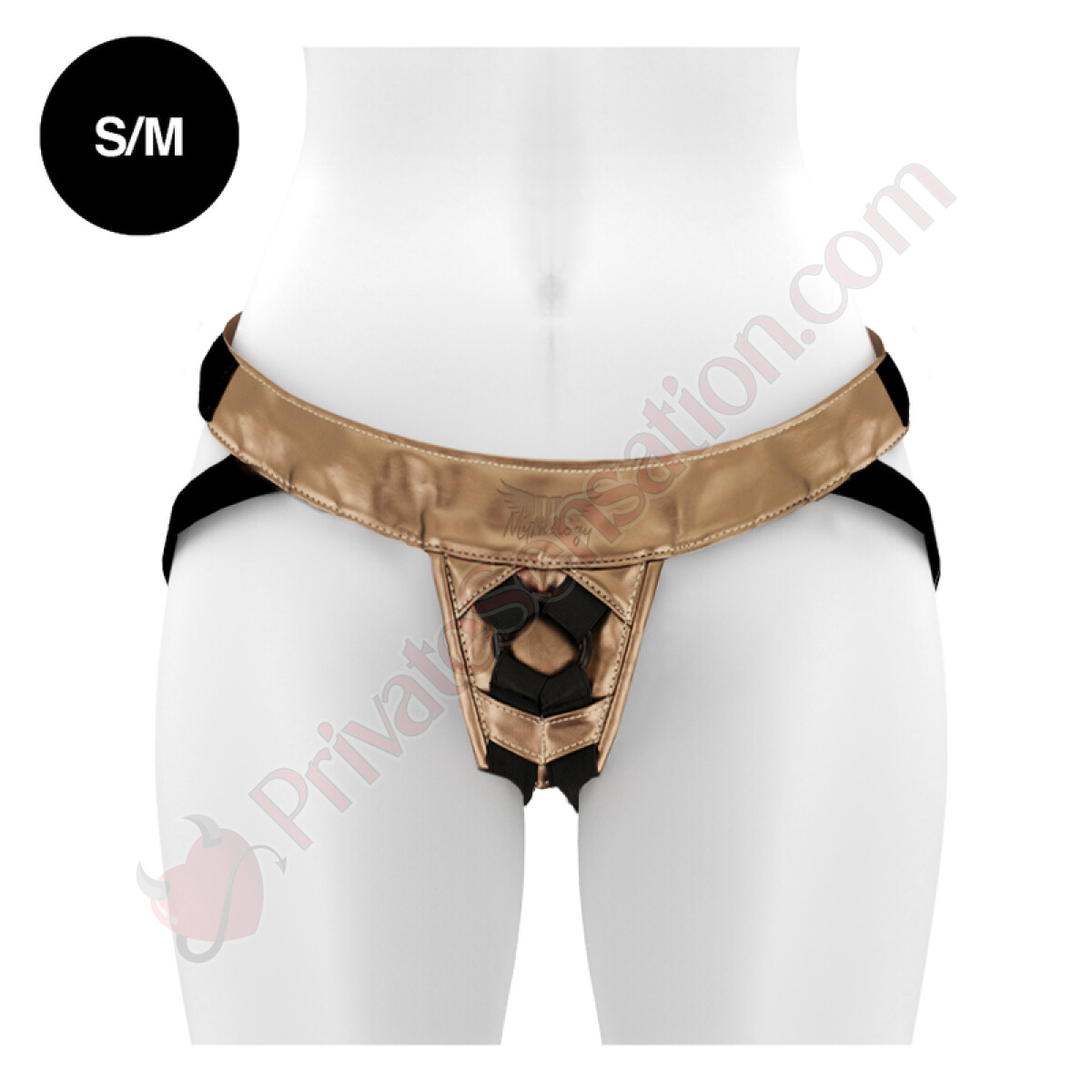 Questo harness è progettato per essere utilizzato con dildo compatibili. Realizzato a mano in Europa con materiali vegani ed eco-friendly, offre una cintura in vita ampia e due cinghie per le gambe, entrambe regolabili per adattarsi al corpo. La chiusura in vita è a velcro, mentre le cinghie per le gambe si regolano tramite fibbie.