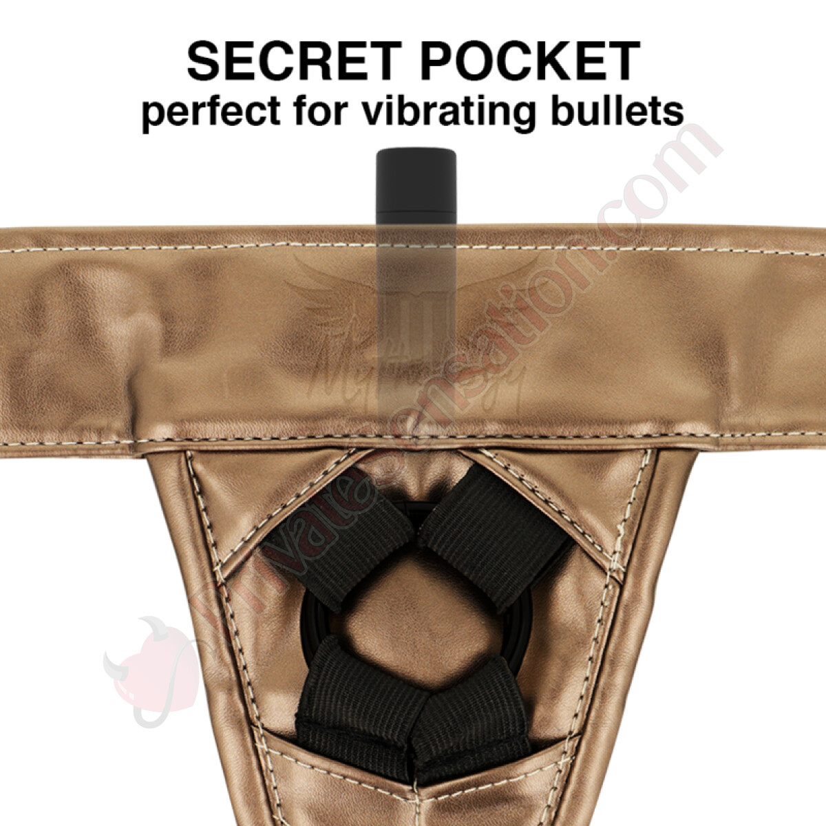 Il design è studiato per la versatilità e può essere indossato in diverse posizioni. Sui fianchi sono presenti due passanti elastici, pensati per tenere a portata di mano un telecomando, un flacone di lubrificante o altri piccoli accessori. All'interno, dietro la zona di supporto, è presente una piccola tasca segreta dimensionata per ospitare una bullet vibrante.