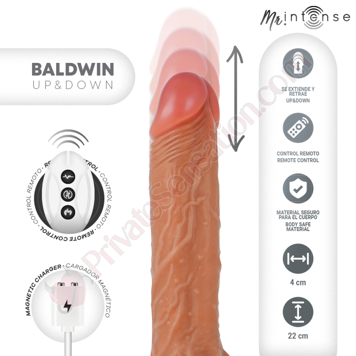 La vera magia di BALDWIN risiede nel suo movimento di penetrazione verticale (Up & Down). A differenza dei vibratori tradizionali, il suo meccanismo interno simula il movimento naturale dell'empito, estendendosi e ritraendosi per creare una sensazione di penetrazione dinamica e profondamente realistica. Non sentirai solo vibrazioni, ma l'effetto completo di un rapporto intimo, potente e soddisfacente.