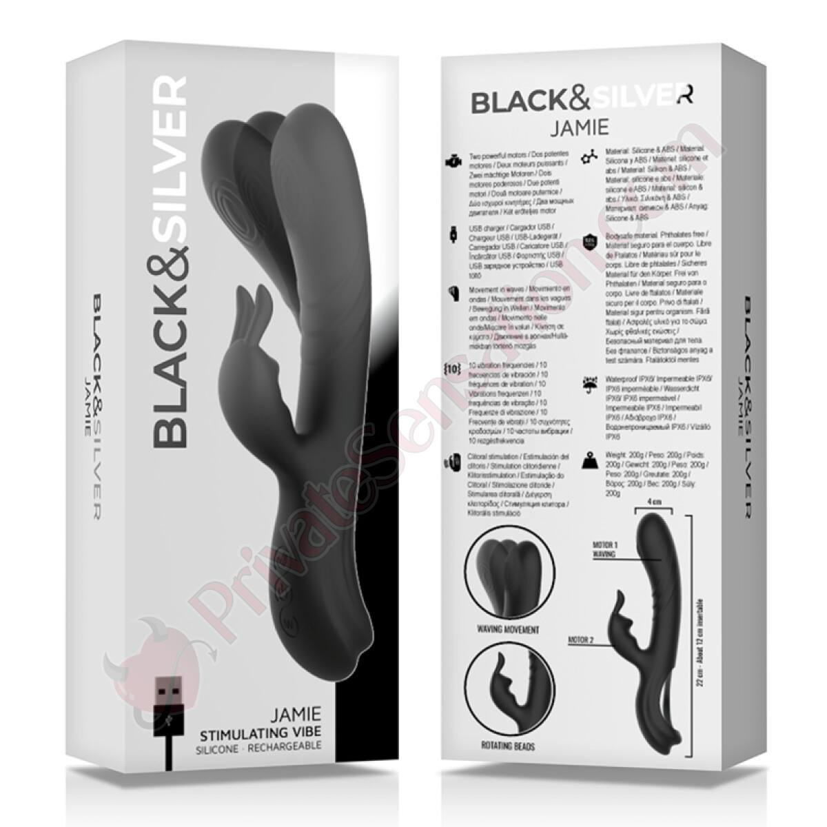 Benvenuta in una nuova era di vibrazioni intense e piacere profondo. BLACK&SILVER™ Jamie non è un semplice giocattolo sessuale: è un dispositivo di benessere progettato per offrirti un'esperienza sensoriale completa e personalizzata. Con la sua tecnologia a doppia stimolazione, Jamie ti accompagna verso orgasmi potenti e soddisfacenti come mai prima d'ora.