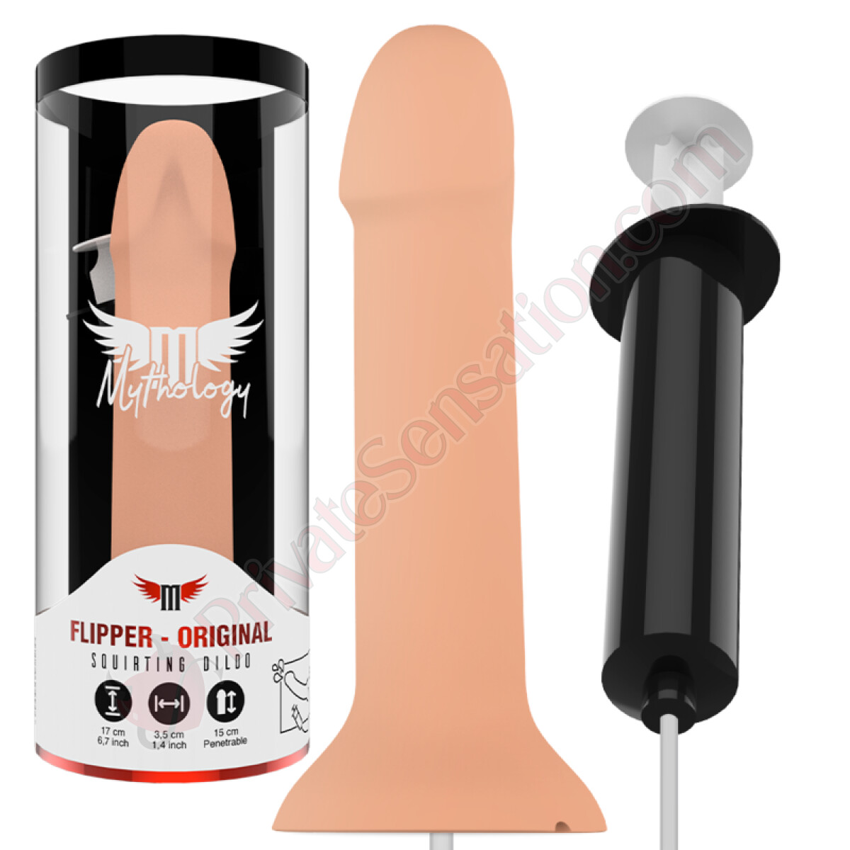 Flipper Original è un dildo realizzato in silicone morbido e flessibile, progettato con una funzione di eiaculazione. La sua struttura è priva di vibrazione e si distingue per il colore unico e il design ergonomico.