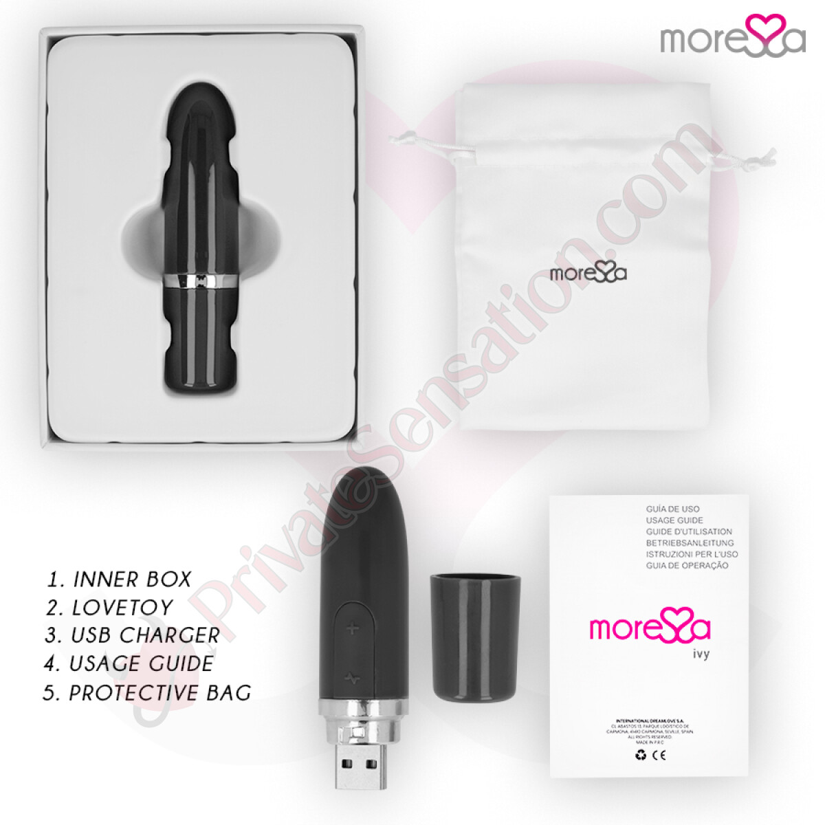 Come tutti i prodotti MORESSA, Ivy unisce forma e funzione in perfetta armonia. Progettato per offrirti il massimo controllo, dispone di quattro diverse modalità di stimolazione, regolabili con un'interfaccia intuitiva. Ogni dettaglio è studiato per garantirti un'esperienza di piacere intenso e una profonda serenità interiore, in qualsiasi situazione.