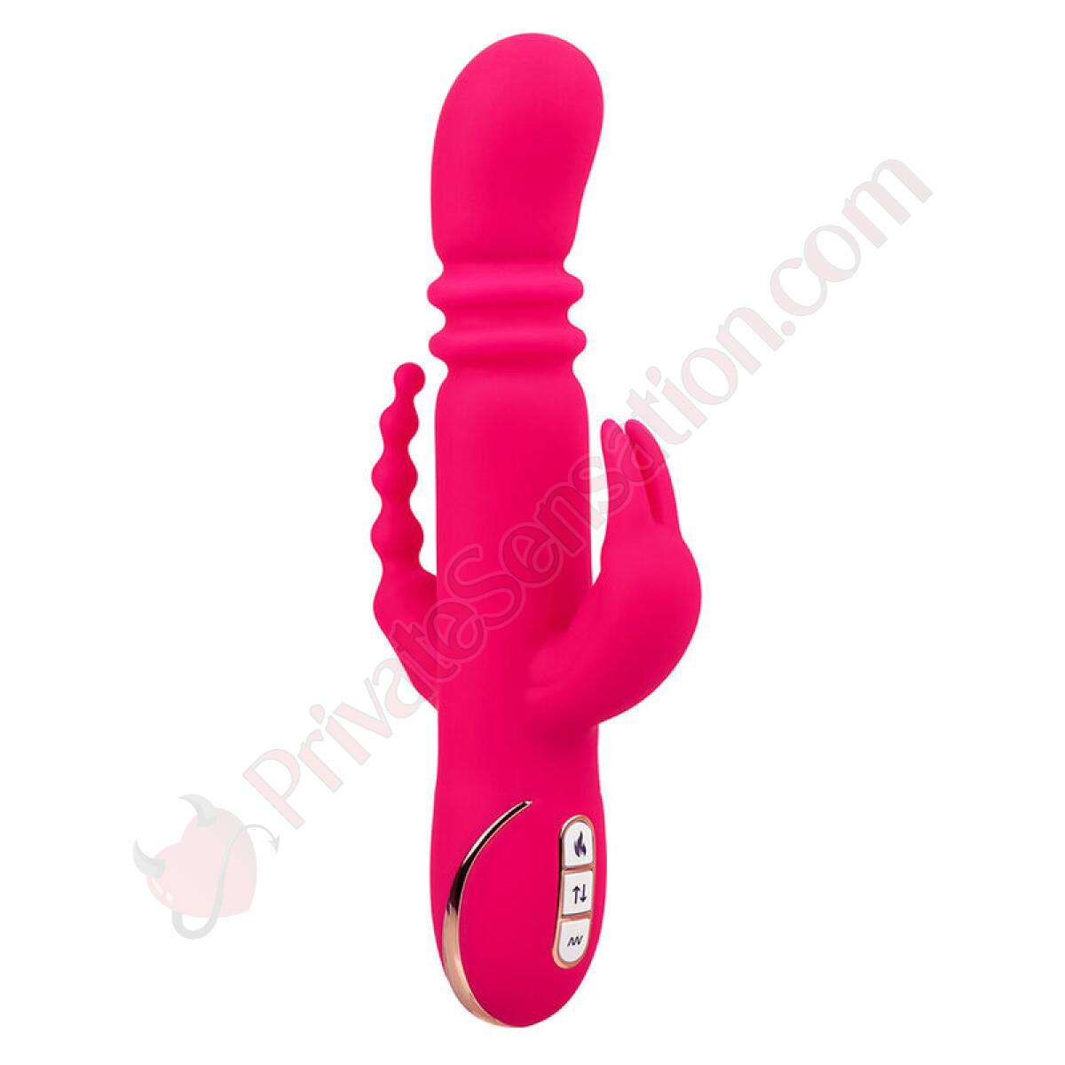 Goditi un'esperienza personalizzata con sette funzioni di vibrazione, pulsazione e scalata, distribuite sia sul coniglio che sulla coda. Tre velocità di azione di spinta offrono movimenti potenti su e giù, mentre il riscaldamento controllato indipendentemente ti permette di mixare calore e movimento come preferisci. I controlli a bottone sono intuitivi e includono una funzione di blocco di sicurezza per viaggi discreti, oltre a luci LED che indicano lo stato del dispositivo.