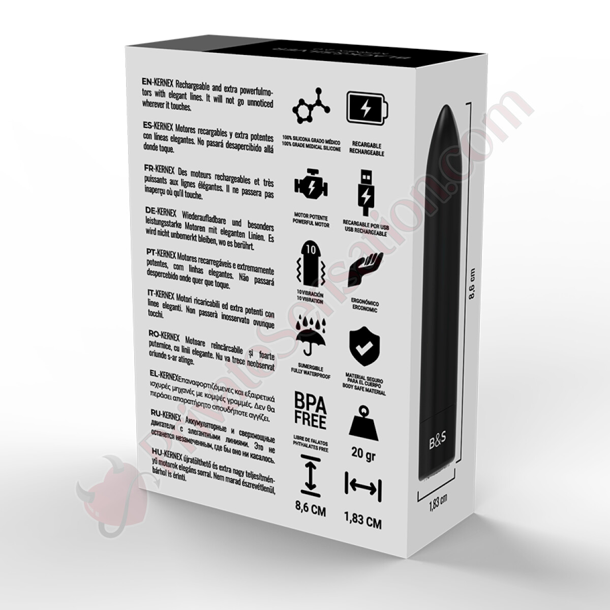 Abbiamo integrato un vibratore potente e unico, che offre prestazioni eccezionali e una durata incredibile. Realizzato per chi ama sensazioni potenti e intense, il Kernex 2 Bullet combina un ambiente portatile e un design classico compatto. Porta il tuo piacere ovunque tu vada, con il suo stile inconfondibile black & silver.