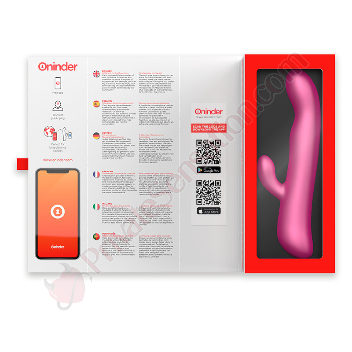 I giocattoli sessuali ti permettono di aumentare la tua autostima e la tua felicità personale. Con la nostra applicazione, un giocattolo ONINDER™ e un po' di fantasia, la vita è ai tuoi piedi per tutto il tempo che desideri.