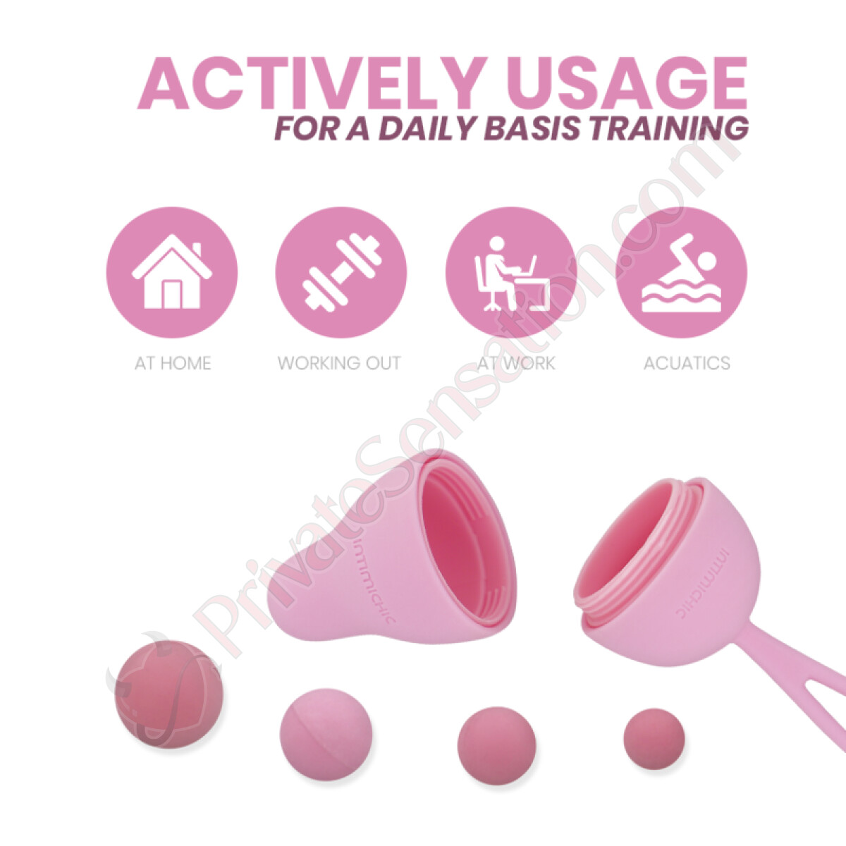 Il sistema Intimichic ti permette di personalizzare il tuo allenamento con una gamma di pesi, per un rafforzamento progressivo e mirato: