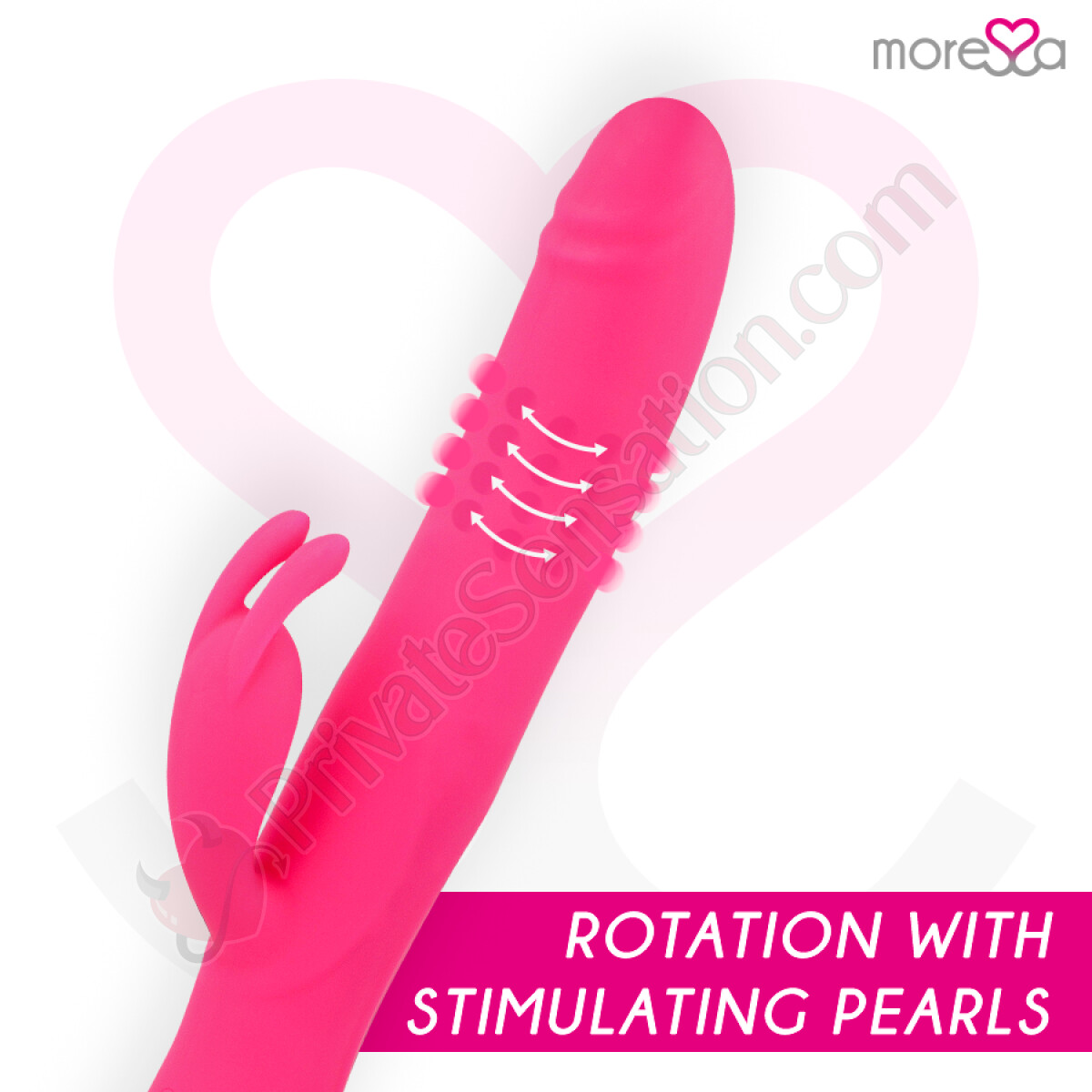 Somer è stato creato per mimare in modo intenso e preciso le zone più sensibili del corpo femminile. Grazie al suo sistema di rotazione multipla, le sfere interne ruotano delicatamente ma con decisione, massaggiando le pareti vaginali e offrendo una penetrazione profonda e soddisfacente. Contemporaneamente, il coniglietto rampante stimola il clitoride con vibrazioni potenti e personalizzabili, garantendo un orgasmo completo e travolgente.