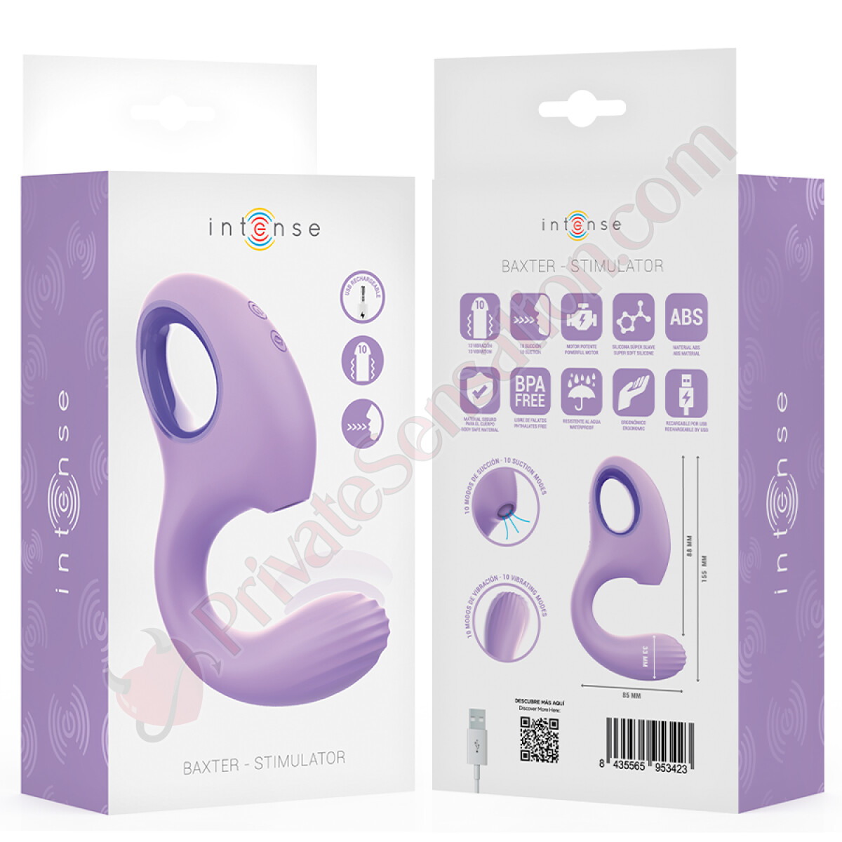 Sei pronto a elevare il tuo piacere a livelli mai sperimentati prima? Presentiamo BAXTER, il rivoluzionario stimolatore e vibratore della prestigiosa marca INTENSE, progettato per chi non si accontenta del banale e cerca un'esperienza intensa, personalizzata e assolutamente travolgente. Con il suo elegante colore viola, BAXTER non è solo un dispositivo, ma un compagno di piacere sofisticato che unisce l'arte della tecnologia di suzione e vibrazione in un unico, potente strumento.
