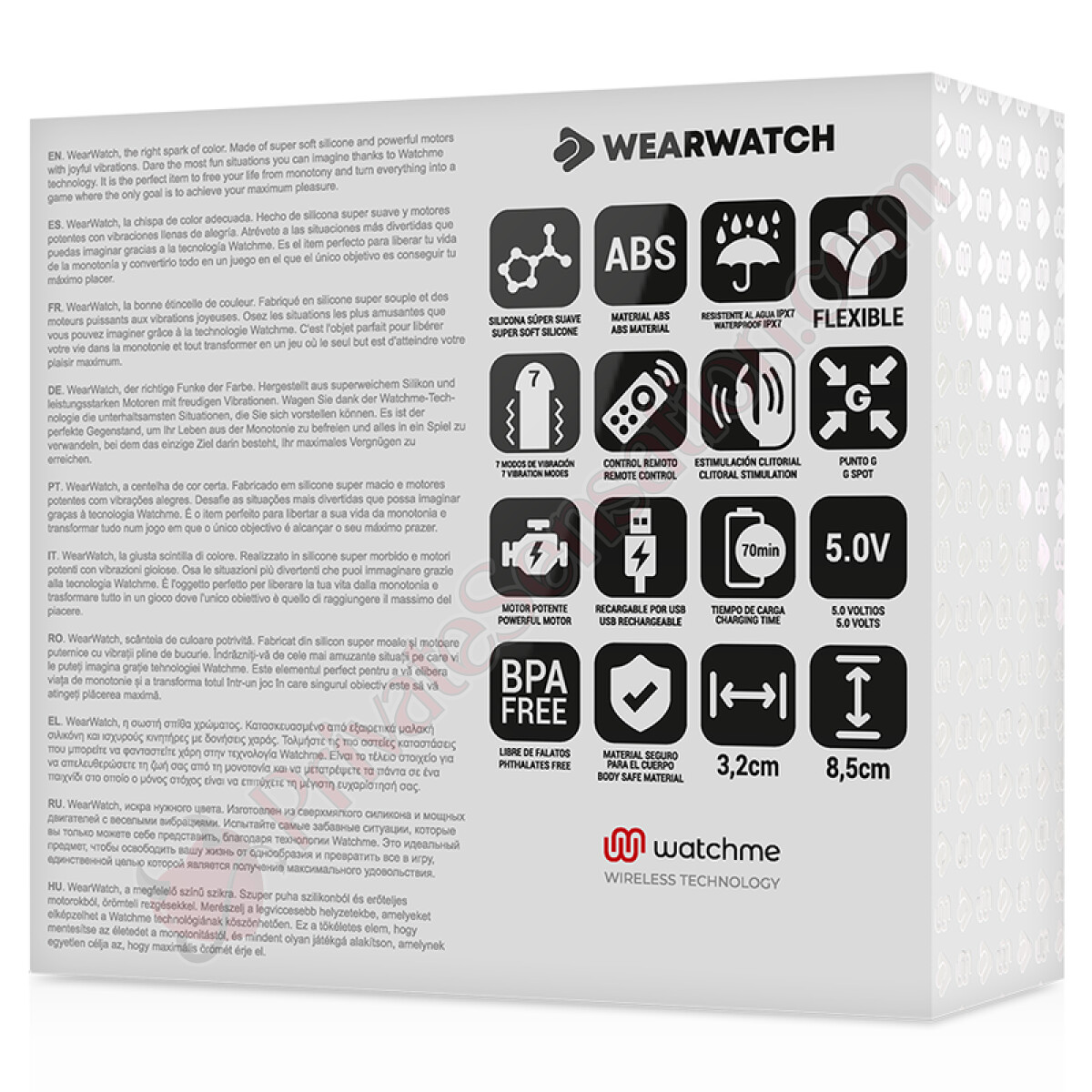 Progettato specificamente per stimolare entrambi i partner contemporaneamente, il WEARWATCH DUAL offre vibrazioni spettacolari durante il rapporto sessuale. La donna indossa il vibratore, che stimola sia il punto G e il clitoride, sia il pene del partner.