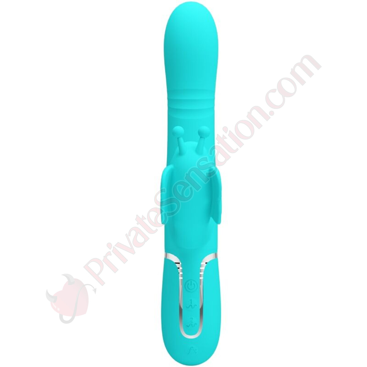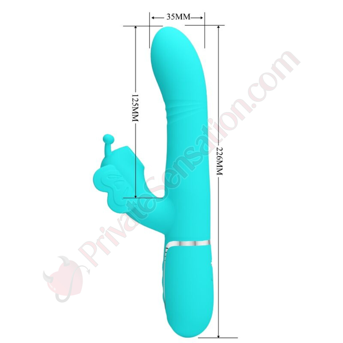 La vera magia del Vibrador Conejo Pretty Love risiede nella sua capacità di deliziare due punti sensibili contemporaneamente. Grazie alla fila di perle rigide che si muovono su e giù in un massaggio intimo emozionante, potrai godere di tre diverse velocità mentre le perle stimolano costantemente il tuo punto più sensibile. Questa sinergia di movimenti crea un'esperienza multisensoriale unica.
