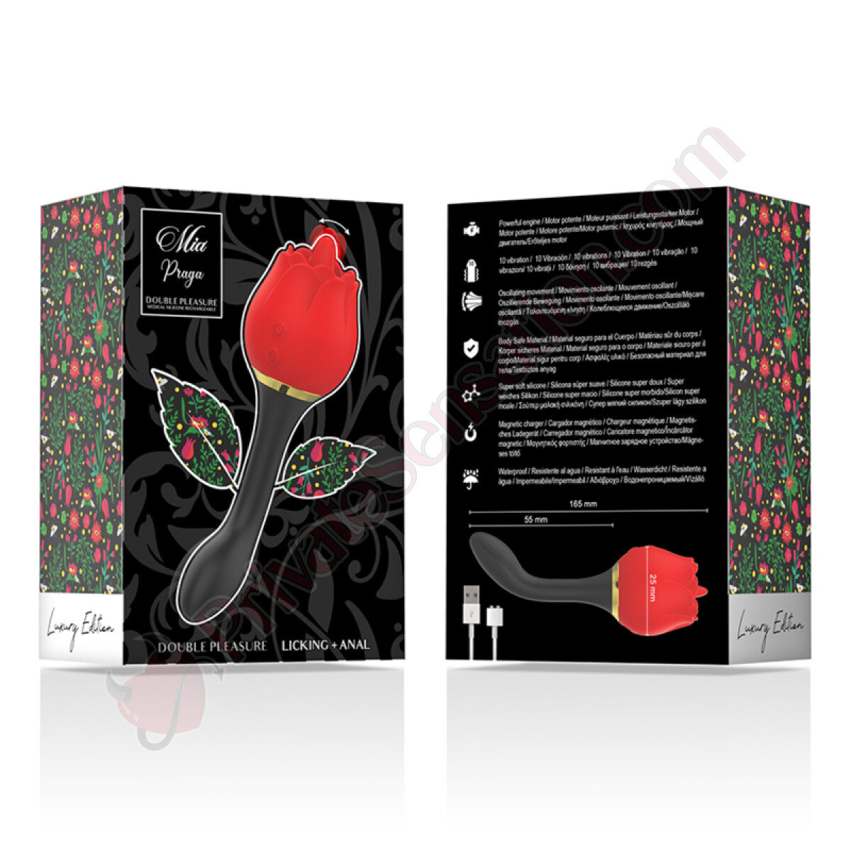 Posiziona la rosa in silicone in modo sicuro sul palmo della mano. Applica MIA PRAGA sul clitoride o su altre zone erogene per godere di vibrazioni profonde. Esplora ambienti e posizioni diverse per personalizzare la tua esperienza. Per un piacere ottimale, abbinalo a un lubrificante a base d'acqua Waterfeel, disponibile in versioni classica, setosa e calda, che protegge il materiale e mantiene la superficie morbida e flessibile.