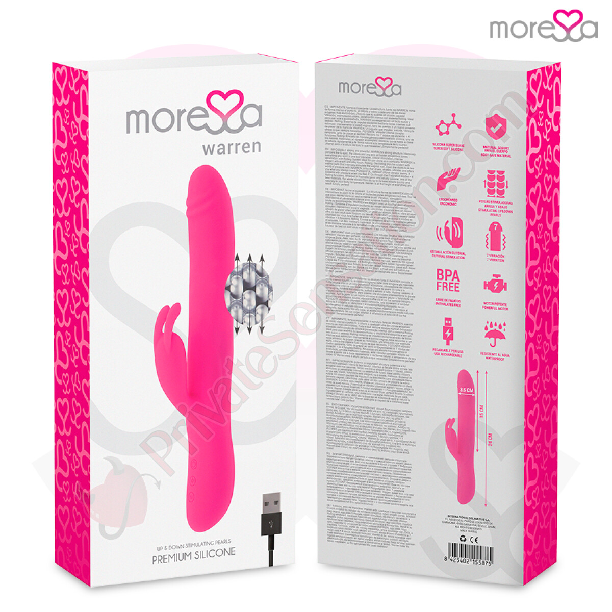 Con Warren, apri le porte a un universo di piacere senza confini. Potente, versatile e affidabile, è semplicemente perfetto per chi cerca l'eccellenza. Ogni dettaglio è curato per regalarti soddisfazione assoluta, trasportandoti in sensazioni ineguagliabili grazie al silicone premium e all'ergonomia avanzata. Scegli la qualità Moressa: energia, forza e garanzia in ogni vibrazione.